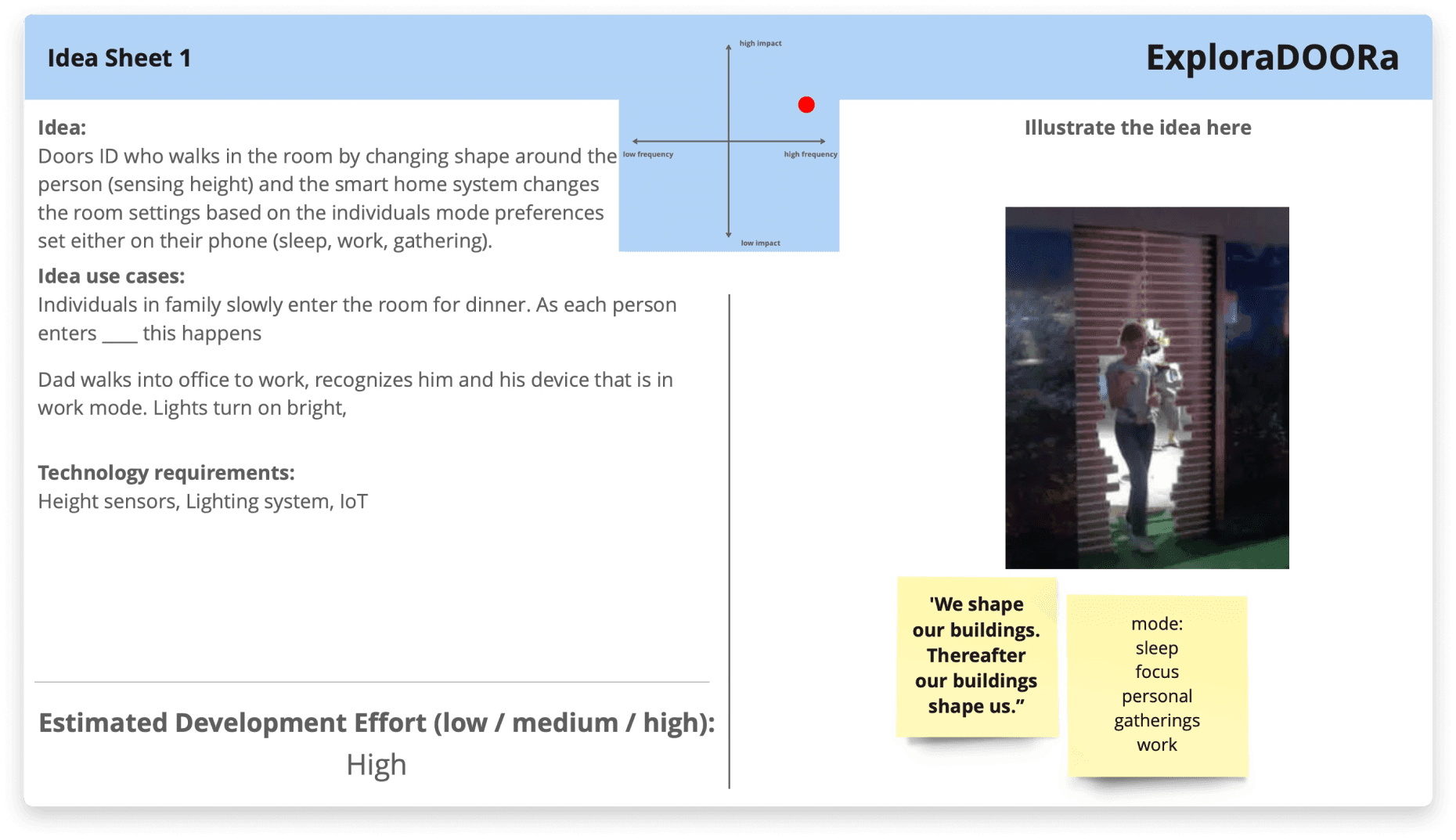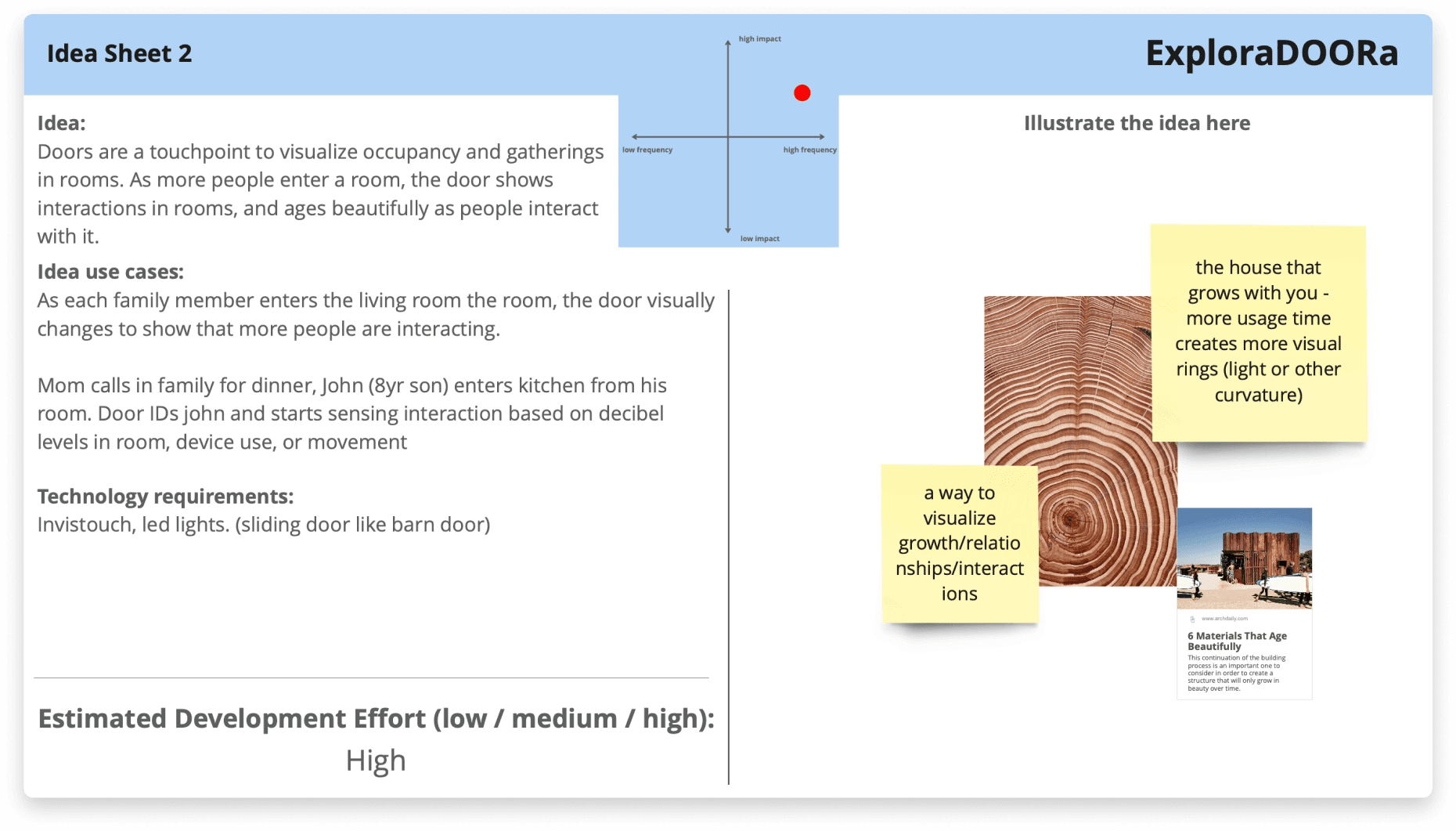 The idea is tailored for the future, envisioning advancements in home door interaction. Our goal was to provide an innovative strategy reshaping doors to balance privacy and openness while promoting physical interaction.