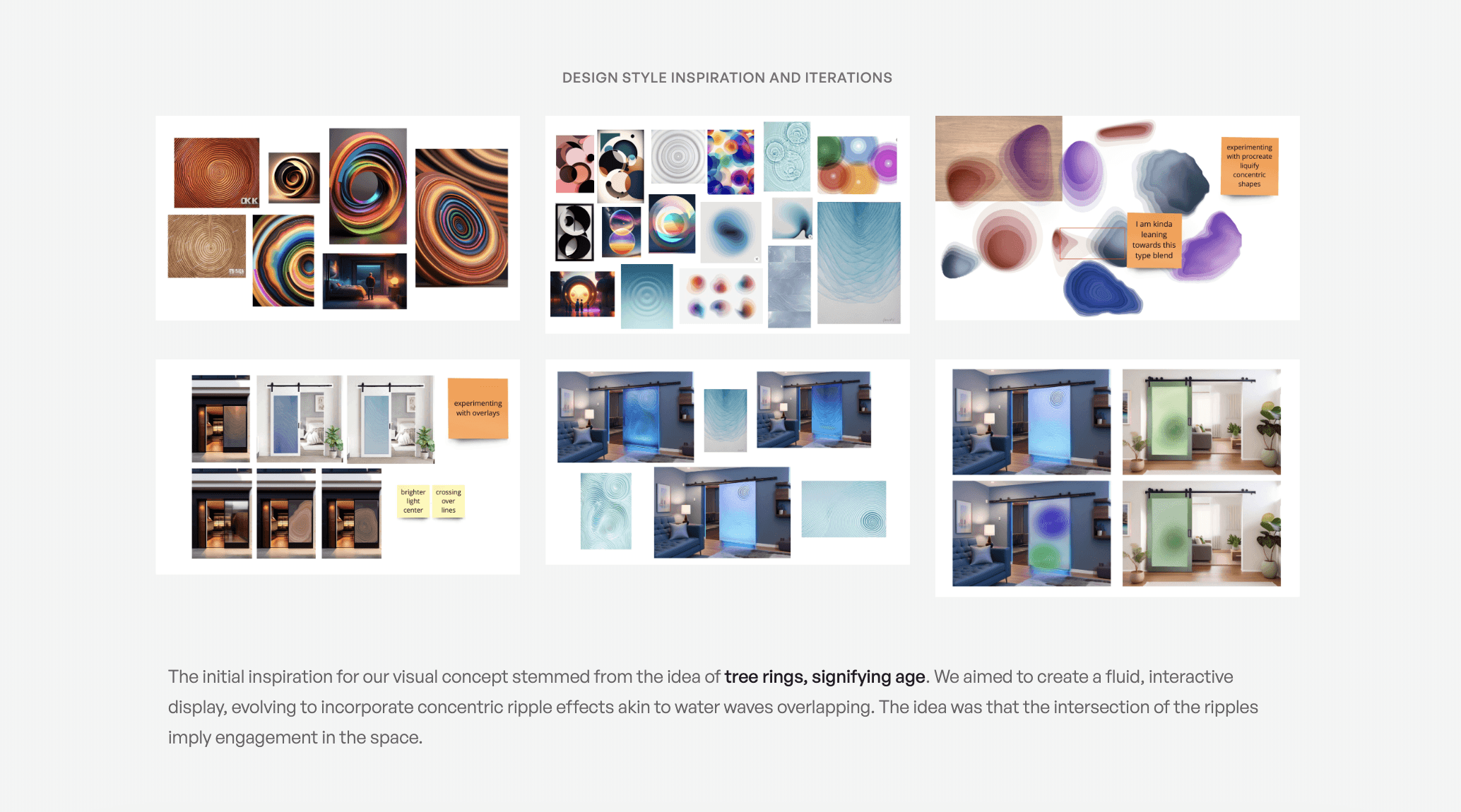 We developed the concept through storyboarding. The most important idea to convey was that the door responds with dynamic visual outputs based on different interactions.