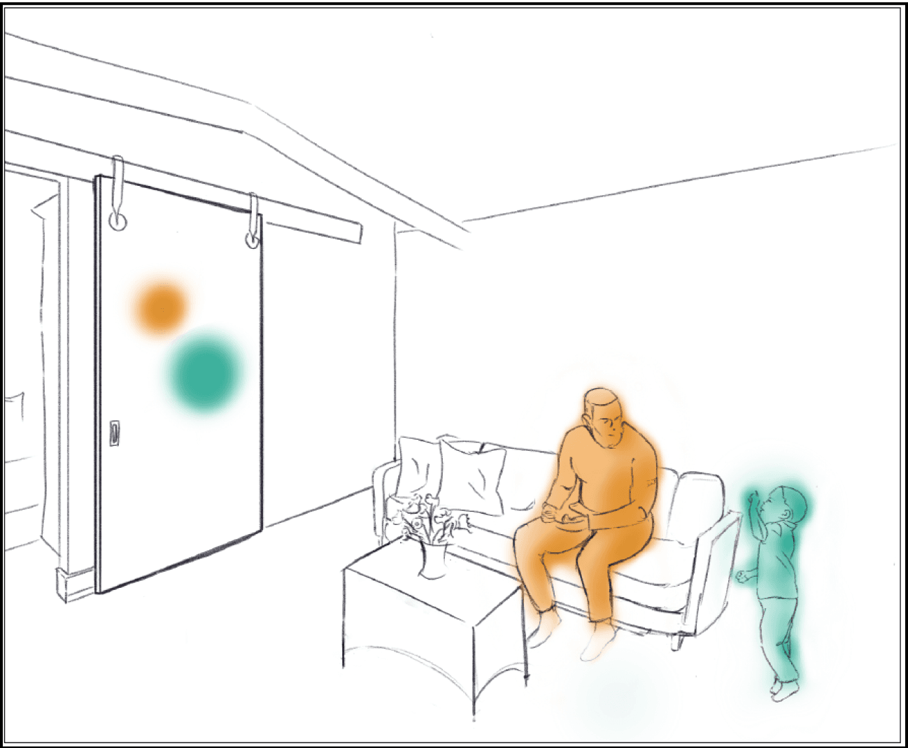 Interior Ecosystem - Personal doors can display activity in other rooms and notify to engage with other rooms & people in the house.
