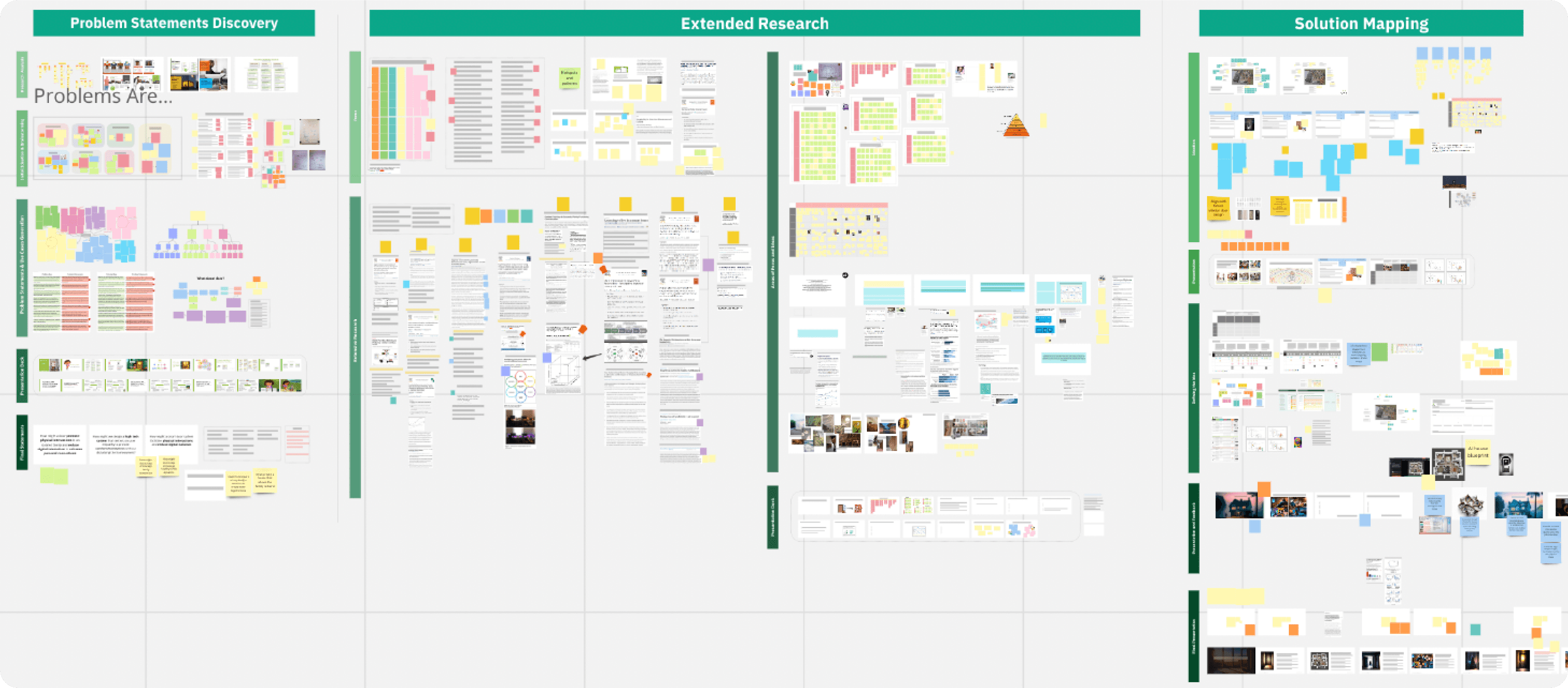 This project has over 100 pages of research available which I could't present in this case study. A huge amount of work was put into ideation and brainstorming. We started with research and had cycles of iteration on problem statements followed by idea generation and solution mapping.