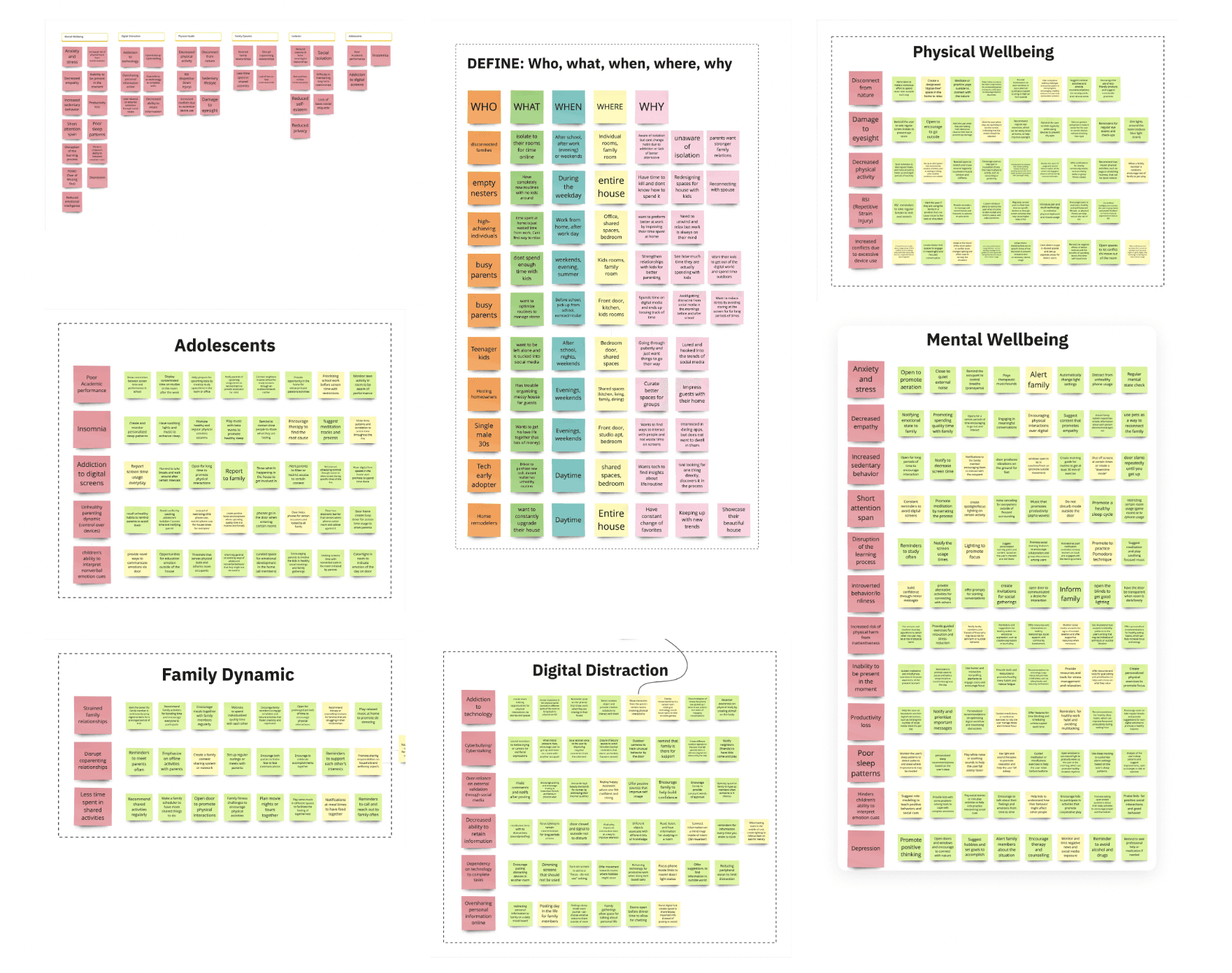 We conducted collaborative research using Miro, that enabled real-time brainstorming, ideation, and organization of ideas.